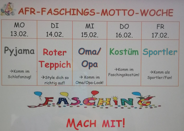 21.02. - 25.02.2022: Faschings-Mottowoche