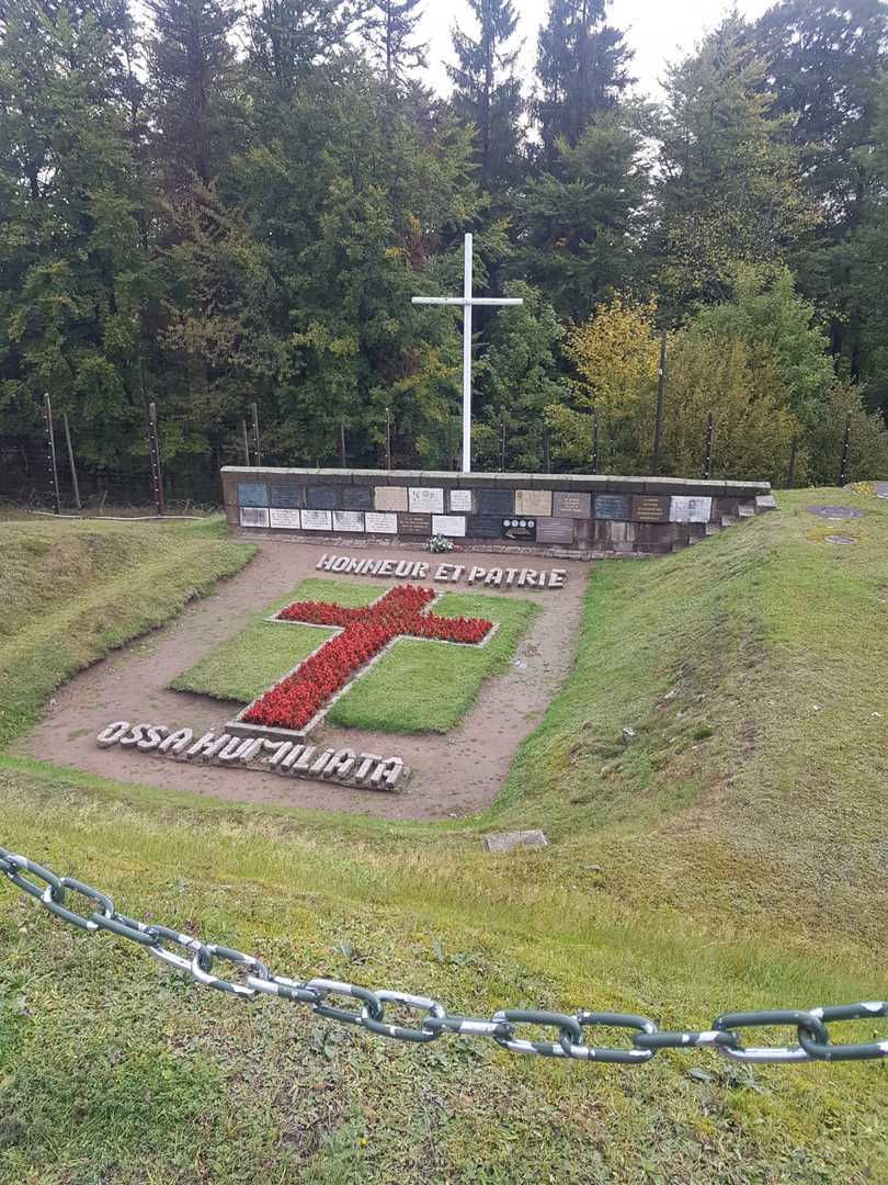 Wir fuhren am 10.10.2019 mit dem Bus von unserer Schule nach Natzweiler-Struthof um dort das Arbeitslager zu besichtigen. Bis wir dort ankamen, mussten wir als letztes Stück einen steilen Berg hinauffahren. Wie uns später gesagt wurde, mussten die Inhaftierten den ganzen Weg selbst bauen und täglich 2-4 Mal hoch und herunter laufen. Und so steil wie es war, konnte man sich vorstellen, dass es kein Spaß war, dies täglich zu durchlaufen. Als wir dann endlich nach der 3-stündigen Fahrt ankamen, besichtigten wir zuerst ein kleines Museum. Dort waren viele Bilder, Flugblätter und verschiedenste Texte, von der Geschichte während und vor dem 2. Weltkrieg in Deutschland, ausgehangen. Zuletzt wurde uns ein kleiner Dokumentarfilm über die Situation dort gezeigt. Als wir dann weiter nach hinten zum Eingang liefen, kamen schon gemischte Gefühle wie „Will ich das wirklich sehen? / Was wenn ich es gesehen habe? / Wie soll ich dann darüber urteilen?“, hoch. Außerdem war es an diesem Tag kalt und windig, weshalb wir Schüler und Lehrer uns gut in die Rolle eines Inhaftierten begeben konnten. Vom Eingang ausgehend, konnte man das ganze Lager mit den Baracken, dem Massengrab und die komplette Umzäunung erkennen. Schon auf dem ersten Blick konnte man sich denken, dass es kein Spaß war hier zu leben. Wir liefen dann den steilen Berg zu den Baracken hinab. Als wir in eine der Baracken gingen, schlug unsere Lehrerin vor, wir könnten uns doch alle zusammen (24 Menschen) in ein kleines Zimmer stellen wo früher einmal 30 Inhaftierte gelebt hatten. Also taten wir dies und quetschten uns in das ca. 3 auf 4 Meter lange Zimmer. Schon nach 30 Sekunden wurde es den meisten zu eng und sie verließen das enge Zimmer wieder. Neben diesen kleinen Schlafzimmern waren auch noch die Todeszellen. Wenn man also etwas Unüberlegtes oder Falsches tat, wurde man dort mehrere Stunden eingesperrt. Dies war ca. 1 auf 1 Meter breit und 1,50 Meter hoch, weshalb man sich weder richtig hinsetzen, noch aufrecht stehen konnte. Unsere Lehrerin erzählte außerdem, dass dort meistens 3 Menschen auf einmal eingesperrt waren, wodurch es noch enger wurde. Mit 2 Freunden standen bzw. saßen wir in so einer Zelle und es war wirklich eng. Das soll man mehrere Stunden aushalten? Besser nicht! Dann liefen wir zu einem Raum, der zwar abgesperrt war, jedoch konnte man erkennen, dass darin eine Liege stand. Wie sich später herausstellte, war diese für Inhaftierte, an denen Experimente gemacht wurden. Die Ärzte wollten so auch wissenschaftlich beweisen, dass, Juden etc. schlecht und unrein seien. Als wir dann weiterliefen und unten ankamen, sahen wir ein großes Grab und dahinter ein Kreuz. Unsere Lehrerin erklärte, dass dort die Toten hineingeworfen wurden. Manche wurden aber auch in einem Ofen verbannt, was dazu genutzt wurde, das Wasser zu erwärmen, so dass es wenigsten für kurze Zeit warmes Wasser gab.