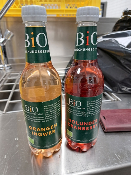 Warme Getränke (z.b. Kaba mit Milch) sowie gekühlte Getränke sind ebenfalls im Angebot.