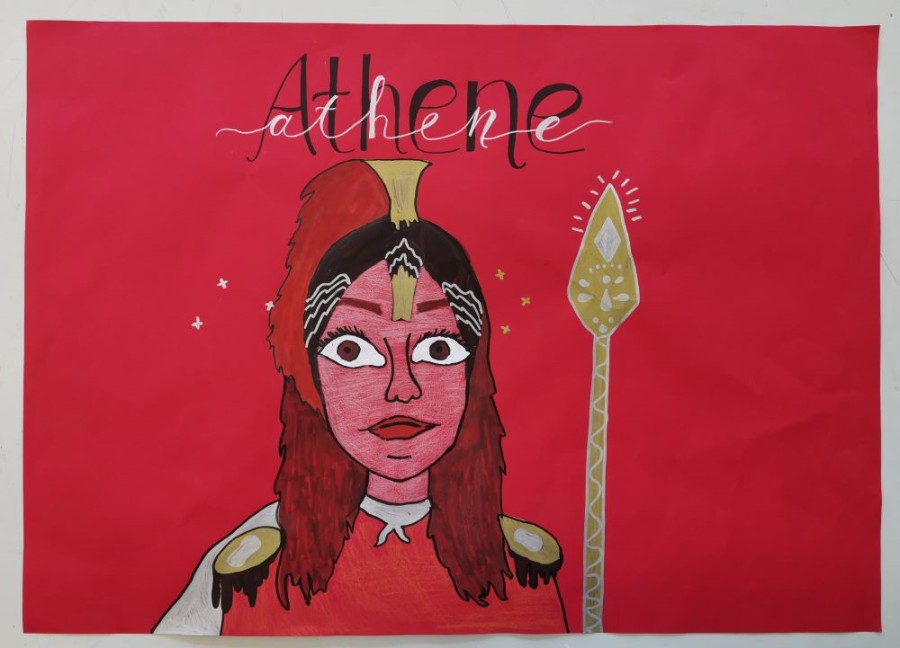 Den Preis für Januar erhalten Megan Melardi, Aurelia Fragapane und Julia Kehl aus der Klasse 6c mit ihrer Darstellung der Athene zum Thema „Griechische Götter“.