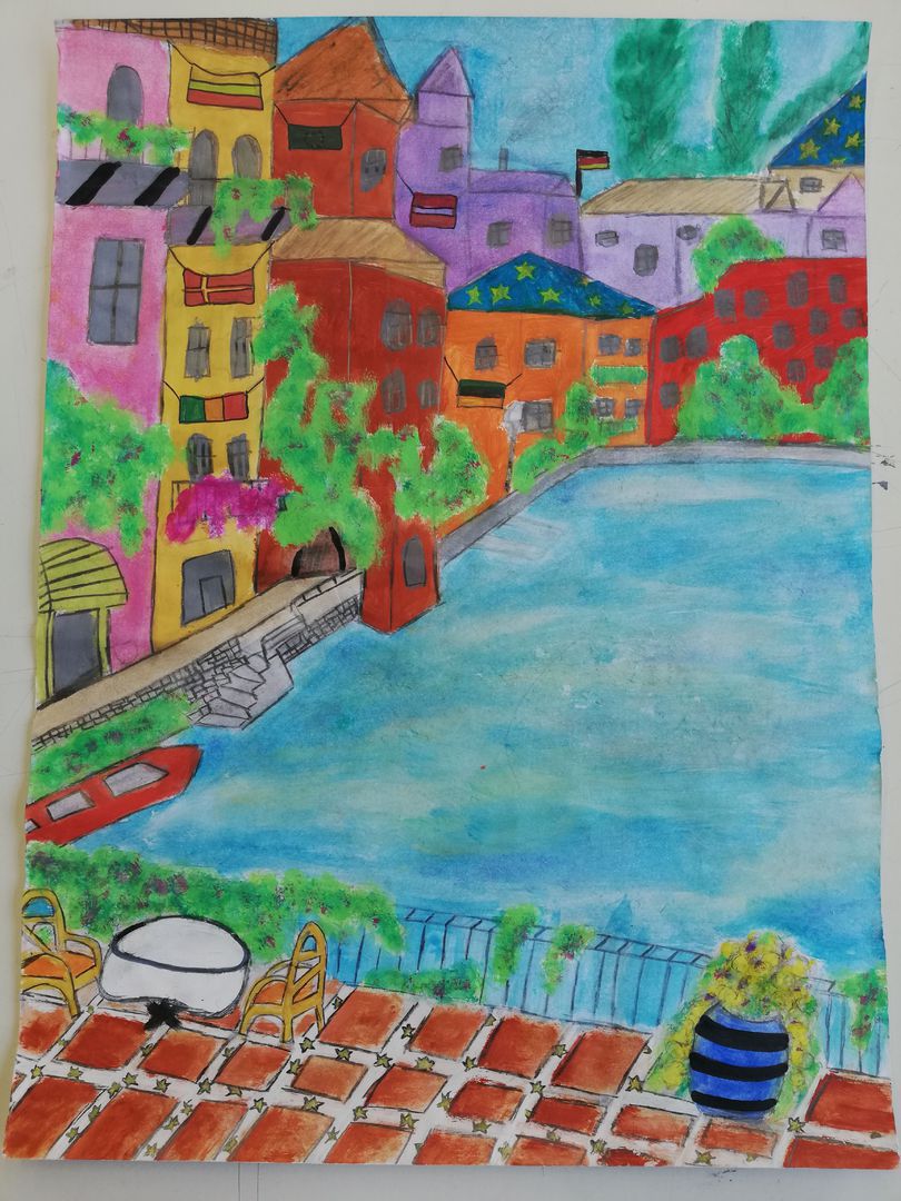 Luanas Bild und die ihrer Mitschüler werden am Tag der offenen Tür im Kunstraum ausgestellt werden. Dann könnt ihr vorbei kommen und euch das Original anschauen. Wir würden uns freuen, wenn ihr im Februar vorbei schaut.