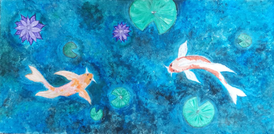 Man schaut auf ein Gewässer, in dem Koifische schwimmen. Die Perspektive von oben ist gut gewählt, die Fische scheinen tatsächlich im Wasser zu schwimmen, da sie in Bewegung gezeigt werden. Wir finden den Titel von Luana sehr passend, da der Betrachter unterschiedliche Tiefen des Wassers wahrnehmen kann. Darüber hinausgehende Assoziationen zu Titel und Bild sind bei verschiedenen Betrachtern sehr unterschiedlich und mit der eigenen Persönlichkeit verknüpft.