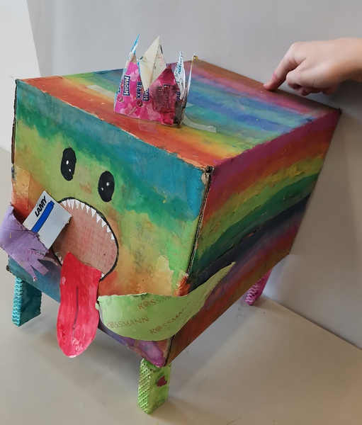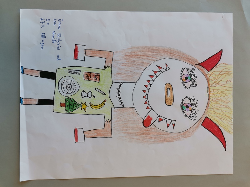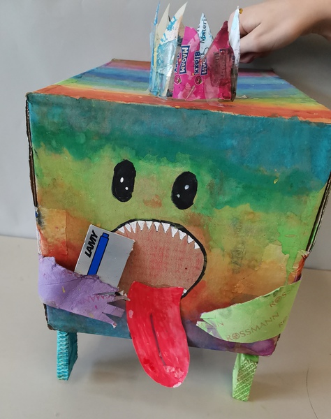 Anlässlich des "Welttags des Buches" bekommen jährlich 4.und 5.Klässler nach vorheriger Anmeldung ein Buch geschenkt. Dieses Jahr erhielt u.a. die Klasse 5c die Geschichte "Iva, Samo und der geheime Hexensee". Wir haben dieses Buch gemeinsam im Deutschunterricht gelesen und behandelt und schließlich auch am Kreativwettbewerb teilgenommen. Hierfür musste jeder Schüler zum einen einen Text verfassen, die Fortsetzung der Geschichte. Zum anderen sollten Müllfresser, Wesen, die im Text vorkommen, gestaltet werden. Es durfte gezeichnet und gebastelt werden. Hier präsentieren wir euch einige Ergebnisse, die dabei entstanden sind.