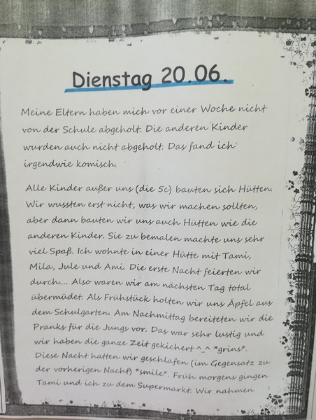 Das Buch bietet an vielen Stellen Anknüpfungspunkte für Schreibanlässe, wie z.B. Tagebucheinträge, Briefe, Dialoge, Innere Monologe und Berichte.